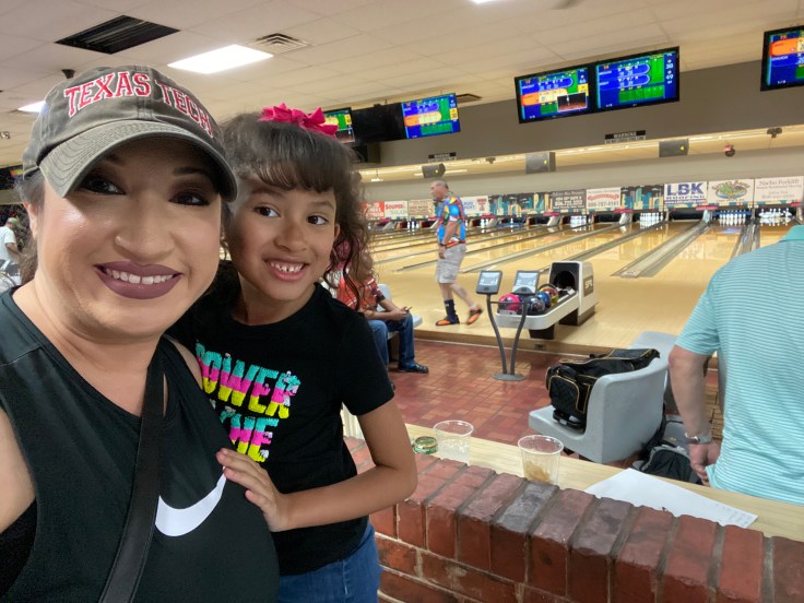 On Saturday, Aria and I went to South Plains Lanes to cheer on Mr. Alexander at a bowling tournament he was invited to participate in. South Plains Lanes is one of three of our local bowling alleys. Honestly, up until this weekend, I hadn’t been there in years. Vince usually bowls at Whitewood Lanes, and only goes to South Plains Lanes for tournaments.