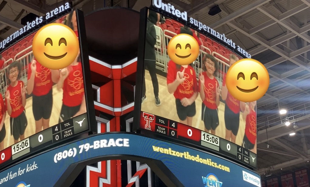 This week Miss Aria got to meet up with her basketball team for a special event. They got to be the team of the game at the TTU Women’s basketball game. The team got to go down to the court and were presented on the jumbotron.